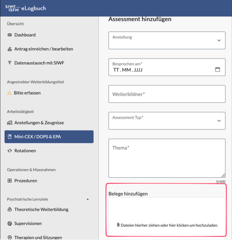 preparedEPA-Bewertungen in mein SIWF-Logbuch übertragen